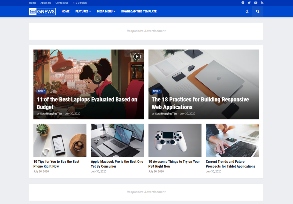GNews, SEO dostu, mobil uyumlu ve yüksek düzeyde optimize edilmiş kodlara sahip tam yüklü bir tek sayfa temadır. Sağlık, seyahat, video, freelance, gazete kategorileri için uygundur.
