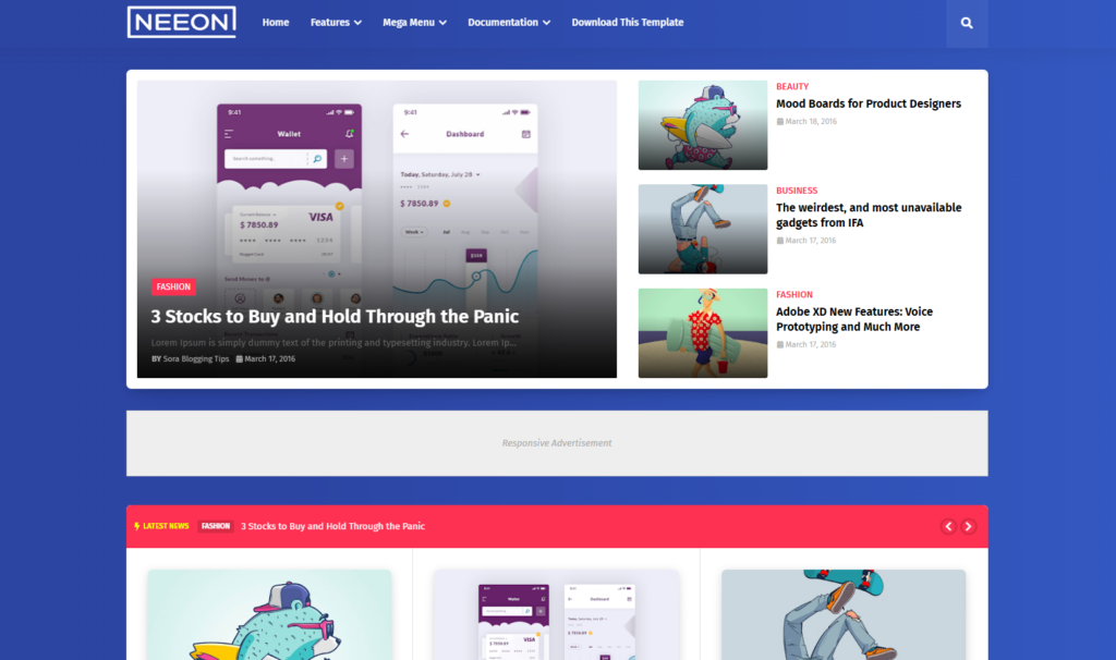Neeon, Yemek, Moda, Seyahat ve diğer birçok benzersiz niş için uygundur. Bu blogger şablonu SEO yapısına ve Adsense dostu kodlara sahiptir.