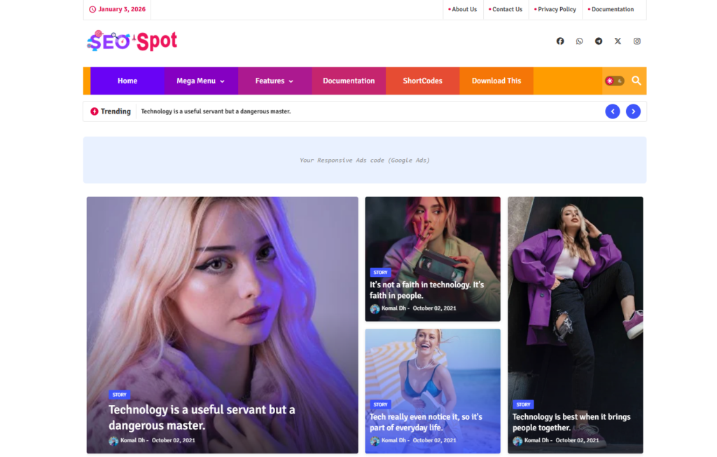 Seospot, Piki Templates tarafından geliştirilen modern ve hızlı bir Blogger teması. Özellikle SEO odaklı yapısıyla dikkat çekiyor. Hafif kod yapısı sayesinde sayfalar hızlı yükleniyor, mobil uyumlu tasarımıyla da her cihazda sorunsuz çalışıyor. Hem kişisel bloglar hem de içerik siteleri için kullanılabilecek esnek bir tema.